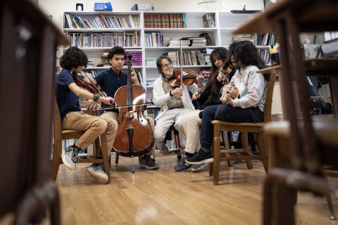Haney repaired the instrument and decided to present it to one of her students at his baptism. Only then did she learn that this student had been praying for an instrument of his own. He fervently wished to attend Sunnydale Academy and then go on to study music but knew this would be impossible without his own instrument. Today, he works alongside Hainey as a colleague, directing the school’s string ensemble.