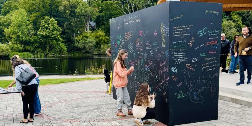 Even the way people approached the wall struck observers. “People approached it with a level of reverence,” Morgan said. “They would slowly rotate their way around the square and they would read what people had written. It was very quiet. Parents were having conversations with kids. And then they would write something meaningful as well.”