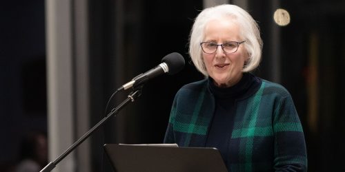 Beverly Matiko, at the spring Honors Agape Feast, enjoyed speaking to students prior to COVID-19 changes on campus. Credit: Lloyd Martinez