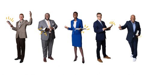 Five Parishioners Trade Pews for Pulpits. From Lto R: Jeff Veldman, Thorly James, Jennifer Daley, Ovi Radulescu, and Lamont Taylor.